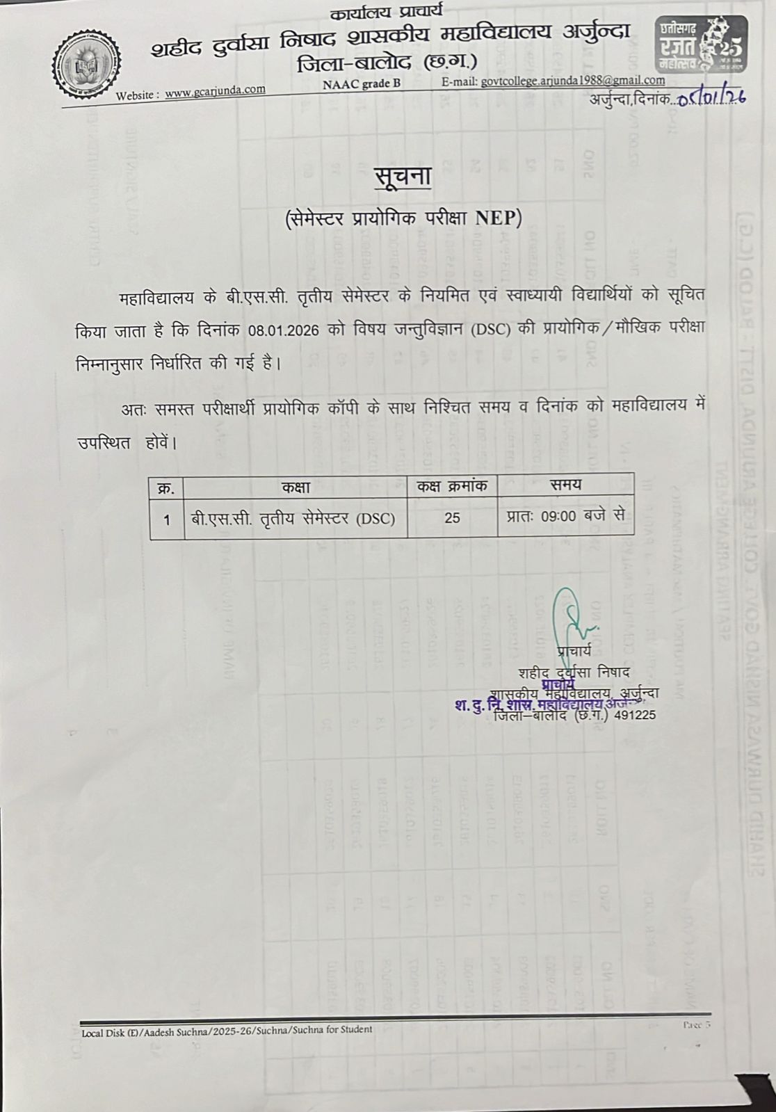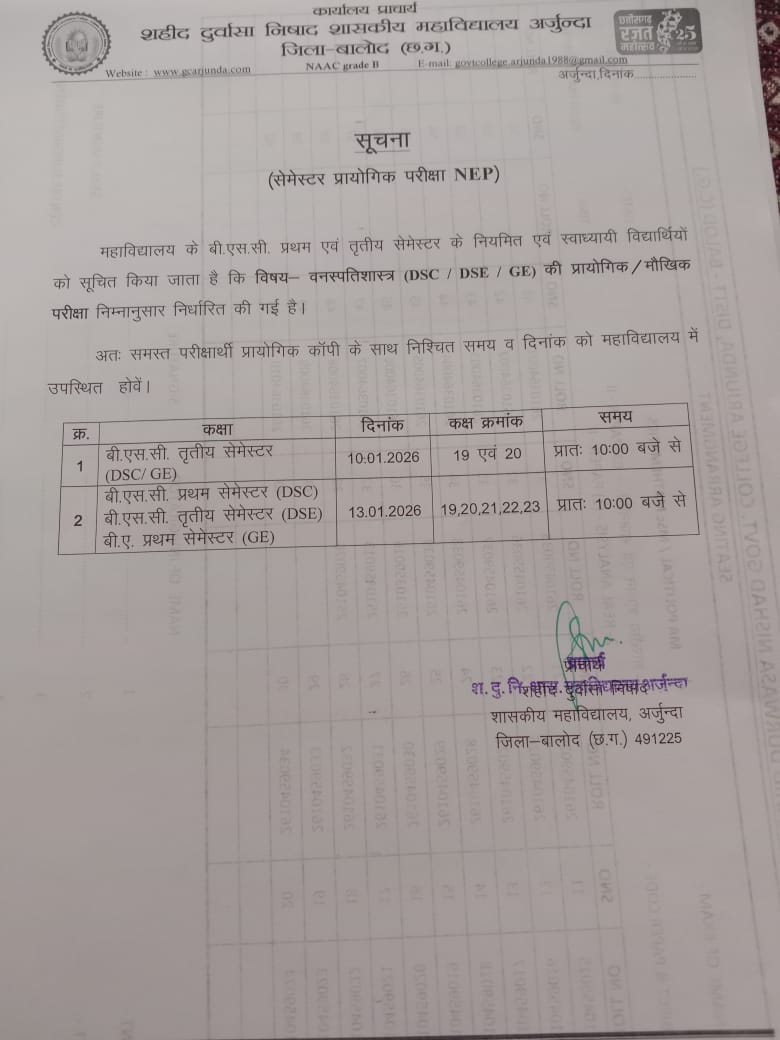 B.Sc III Sem Practical Exam Notice