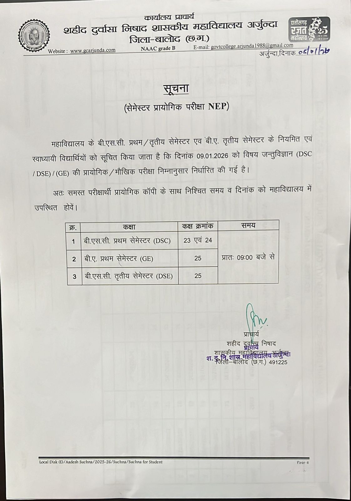 Semester exam Notification