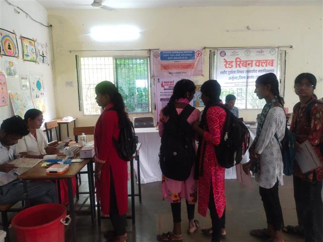 One day Health Check up camp was organised in Shahid Durwasa Nishad Govt. College Arjunda by Red Cross Society on 27-09-2025 where students were checked for Sickle Cell Disease, Anemia, Blood Group and Body weight